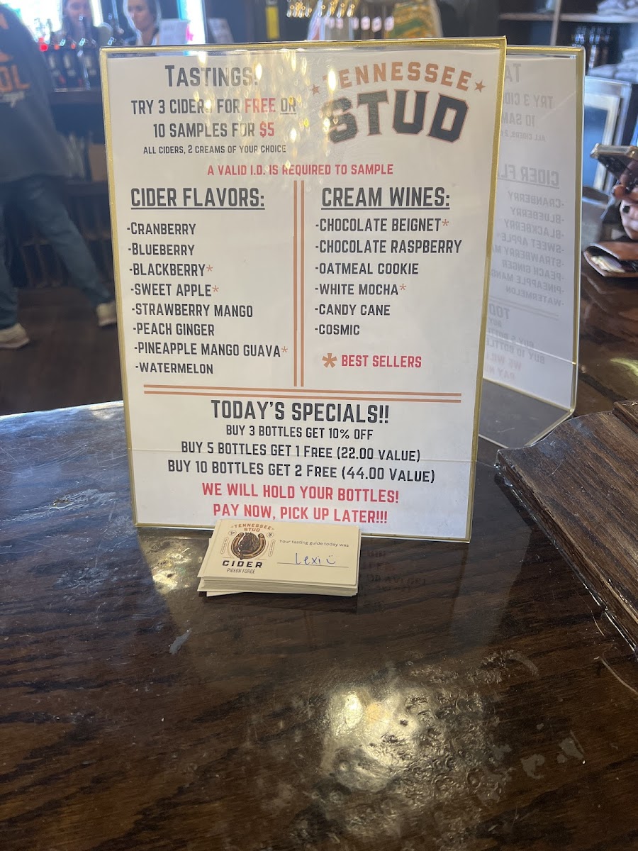 Welcome to Tennessee Stud Cider - Pigeon Forge, a hidden gem nestled at 131 The Island Dr in the heart of Pigeon Forge, TN. This cider haven promises a delightful experience for any cider enthusiast. The tasting sessions, featuring up to ten unique flavors, have received rave reviews. Customers like Sarah Delange and Ellie Hearn praised the friendly service and the inviting atmosphere, highlighting how they left with several bottles in hand after sampling delicious varieties.